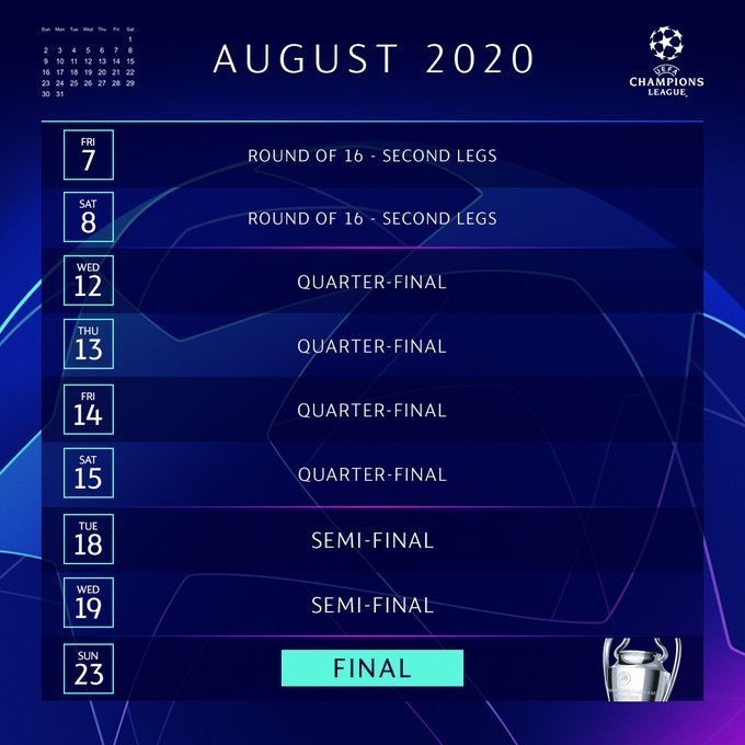 Η πιο σημαντική αλλαγή για τη σεζόν 2020-21 στο Τσάμπιονς Λιγκ είναι ότι από τον πρώτο ως τον τρίτο προκριματικό γύρο τα παιχνίδια θα είναι μονά. Η πιο σημαντική αλλαγή για τη σεζόν 2020-21 στο Τσάμπιονς Λιγκ είναι ότι από τον πρώτο ως τον τρίτο προκριματικό γύρο τα παιχνίδια θα είναι μονά. Ο τελικός διεξήχθη στο Ολυμπιακό Στάδιο Βερολίνου στην.